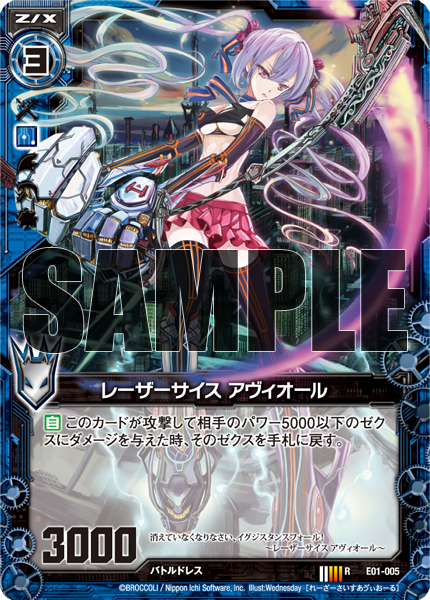 自:このカードがバトルで相手のゼクスを破壊したとき、あなたの「バトルドレス」を1体選び、そのスクエアにこのカードを置き、このカードが置いてあるスクエアにそのカードを置く。(なんかすごく分かりづらいけど、今あるテキストを参考に作ったらこうなりました。要するに、スクエアの位置を交換する。)